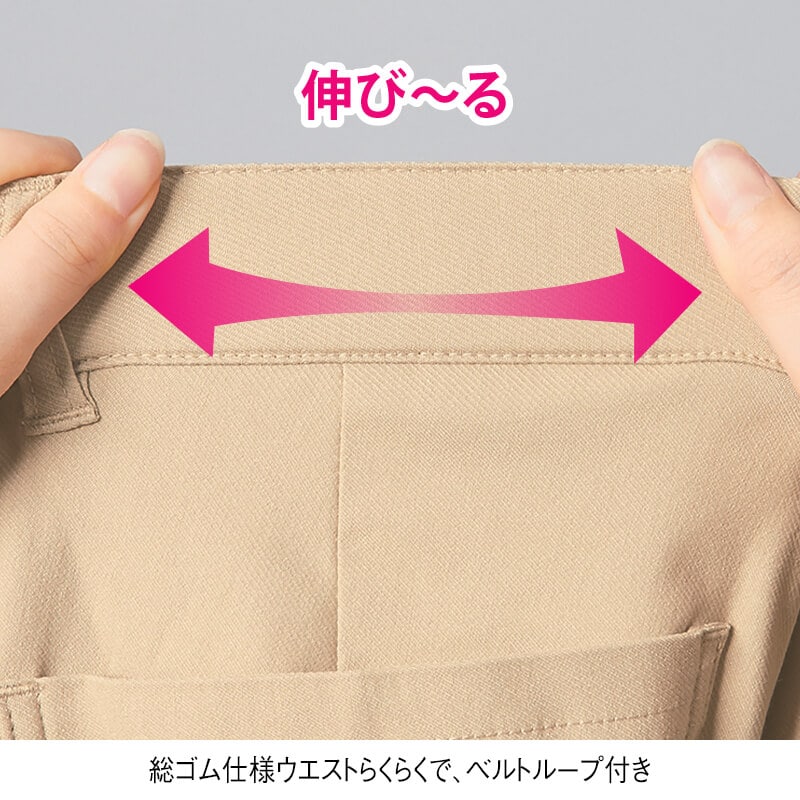 ウエストベルトの中には、ぐるり総ゴムが隠されており、ウエストもラクラク快適に履いていただけます。