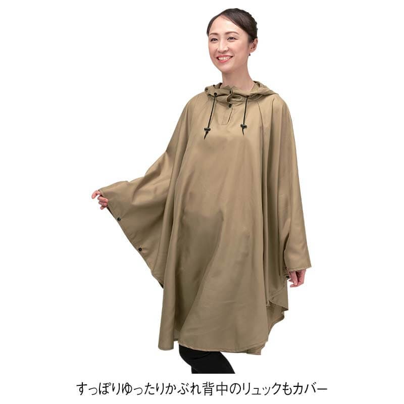 ゆったりかぶれてリュックもカバーできるポンチョタイプ