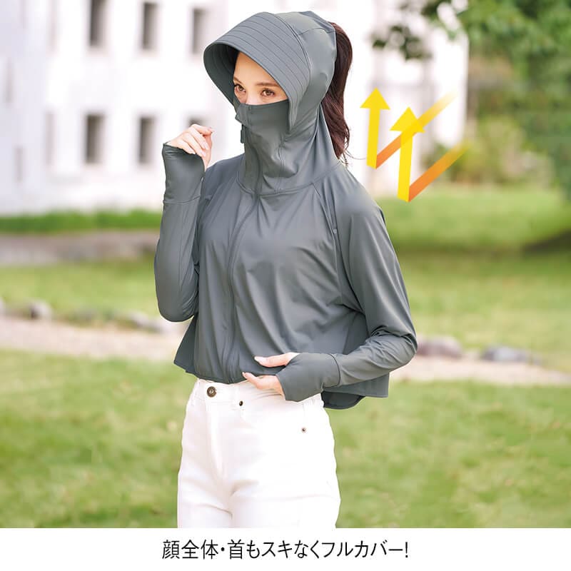 顔全体をカバーし、髪が通せるホール付きで手の甲まですっぽり!