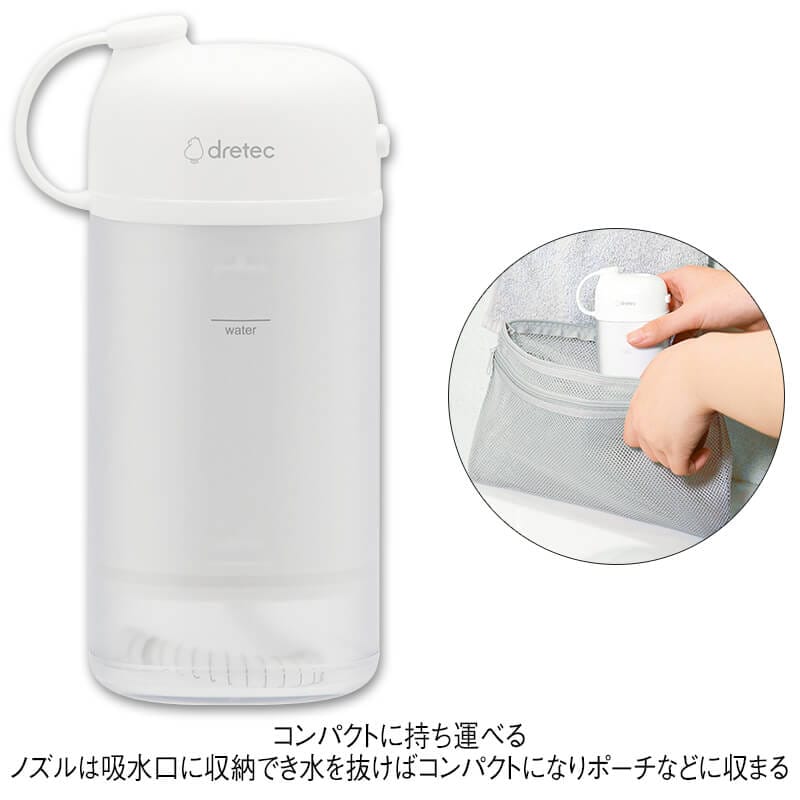オフィスや外出先などに便利な携帯型で、ノズルも収納可能。