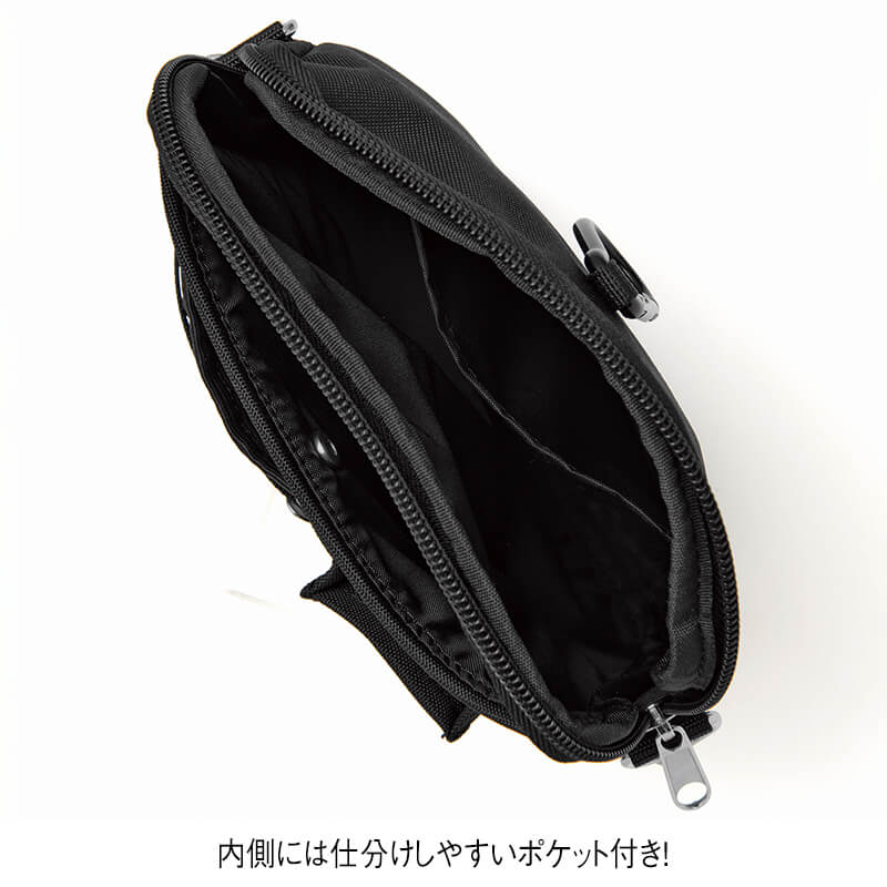取り外し可能な2WAYベルト付きだからショルダーとしてもウエストポーチとしても使える便利アイテム!