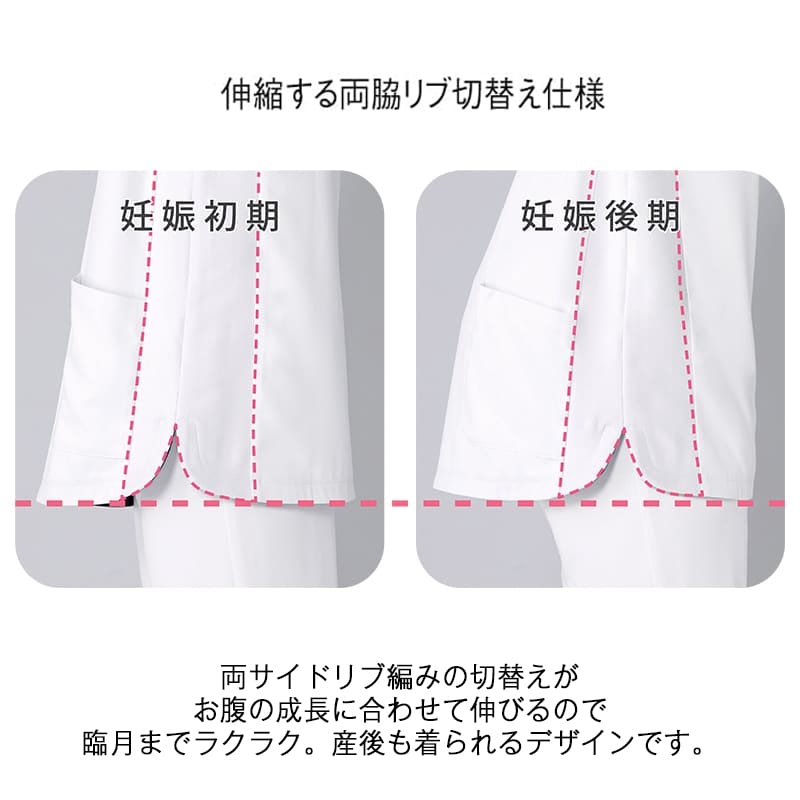 妊娠したらマタニティ専用の白衣に着替えて、からだをやさしくサポート