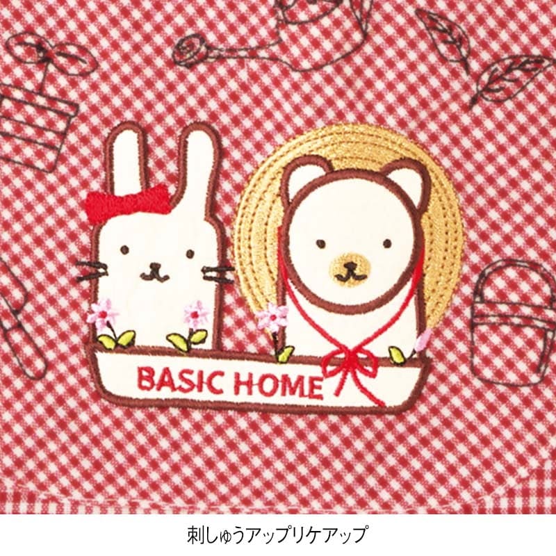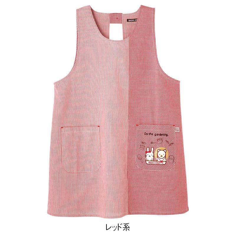 - > 細ストライプ×チェック縦切替えアップリケエプロン