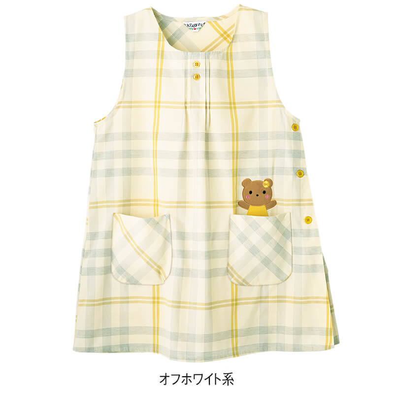 - > くまさんアップリケ後ろ切替えエプロン