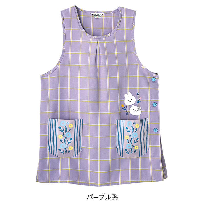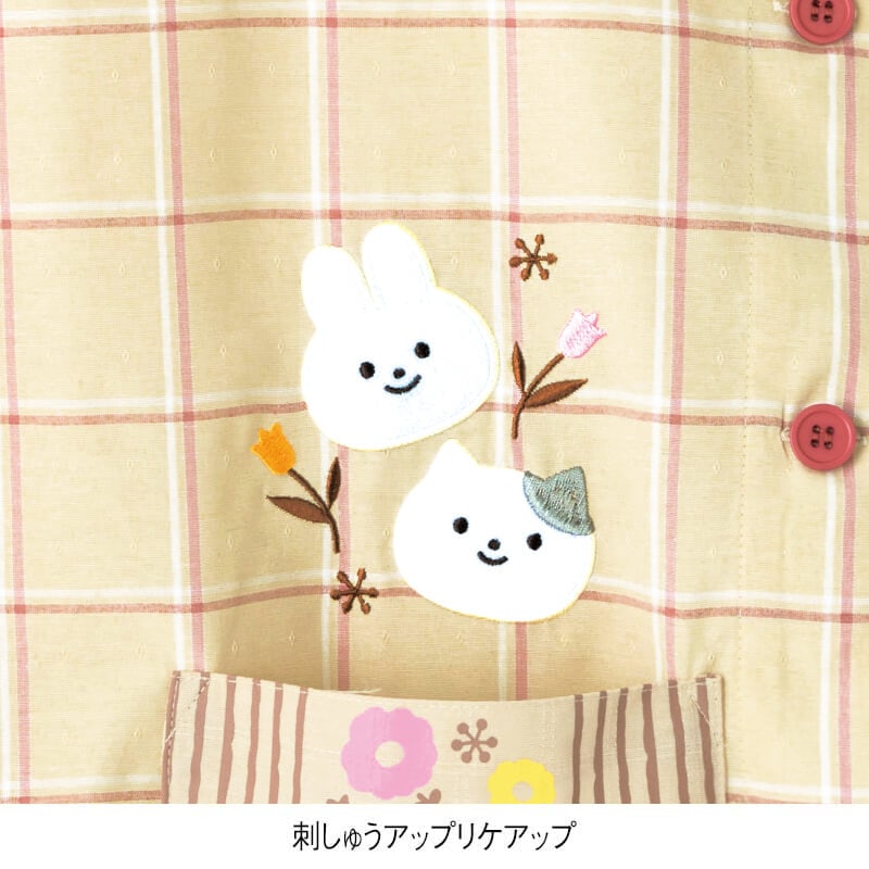 - > うさねこアップリケチェック柄エプロン