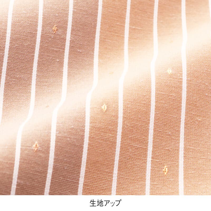 - ●素材/ポリエステル85%、綿13%、レーヨン2%(布帛(先染ストライプ×無地))