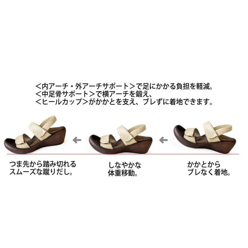 内アーチ・外アーチサポートで足にかかる負担を軽減。