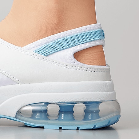 同僚が履きやすいと言っていた通り大変履きやすく足も全然痛くなりません。また、今回ホワイトネイビーを購入したのですが、エア部分も紺色で、いろんな人から「かっこいい!」と言われました。購入して良かったです。投稿者:ノゲ性別/属性:女性年代:40代身長(cm):161~165体重(kg):46~50購入したサイズ:ホワイト/L(24.0~24.5cm) -