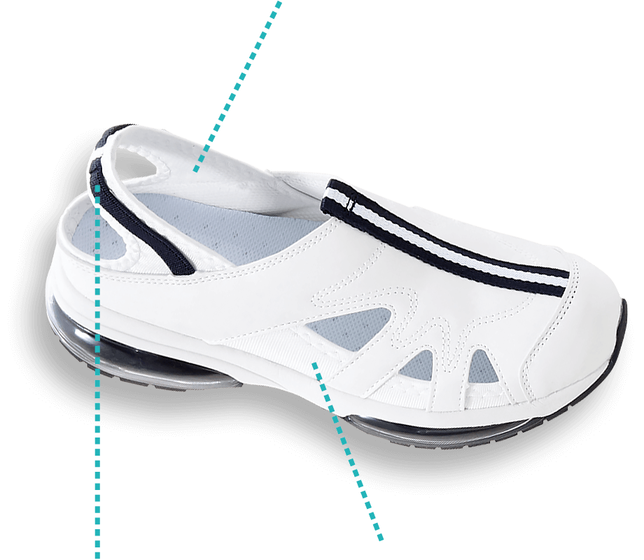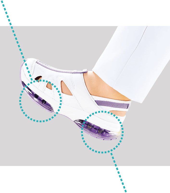 ハードな立ち仕事に!つま先3: かかと7 のかかる衝撃を効果的なエア配置で緩衝し、疲れから足をやわらげる!
