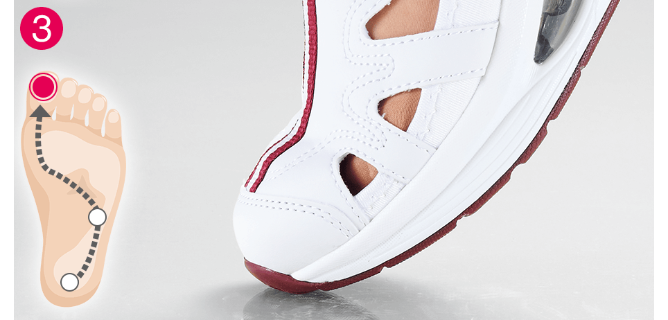 つま先のカーブ形状により自然と大きく蹴りだす歩行になります。