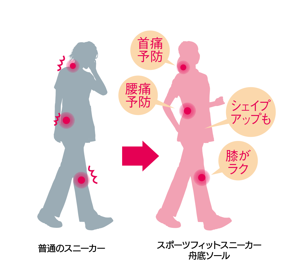 スポーツフィット舟底なら細身でスタイル良く履けローリング歩行も美しく実行!
