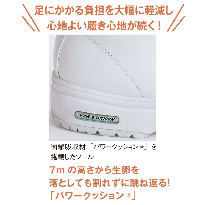 7mの高さから生卵を落としても割れずに跳ね返る!衝撃吸収材「パワークッション(R)」を搭載したソール。