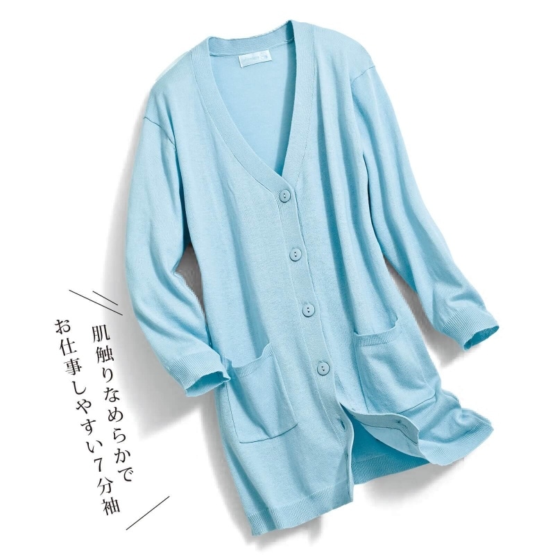 お仕事用カーデの定番は、肌ざわりのいい綿混がおすすめ。