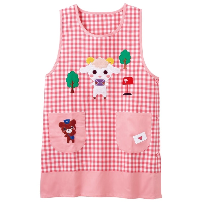 いつまでも歌っていられる楽しい人気の童謡が、パッと目を引くギンガムチェックのかわいいエプロンになりました。