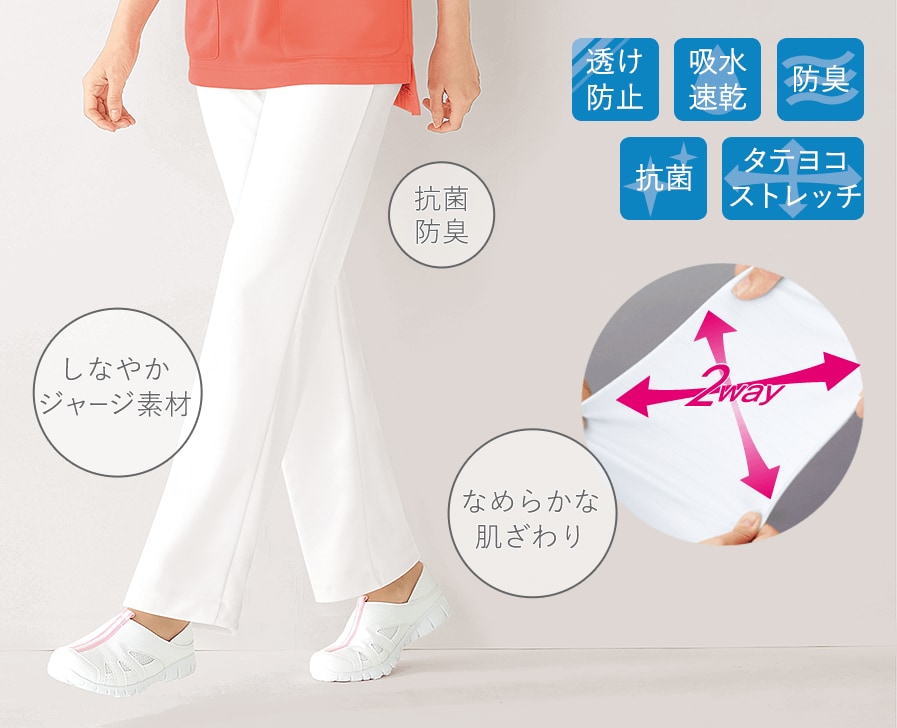 すごく伸縮性があって履いていてすごく楽です!家でジャージを履いているような感覚になるくらい仕事中楽にはけます!
