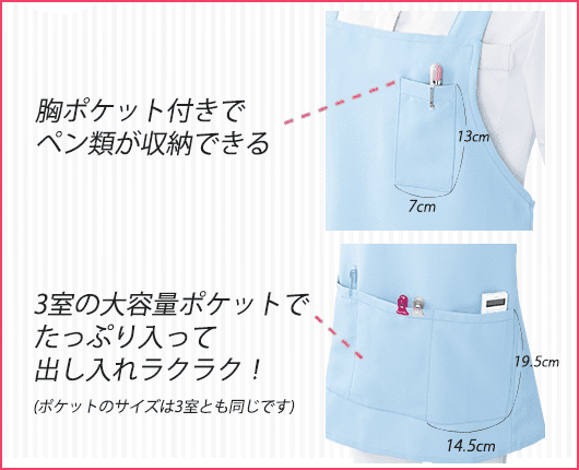 【アンファミエオリジナル】【売れてます】【UNIサイズ】【4サイズ展開】【胸ポケット】【ポケット3室】【制電加工】