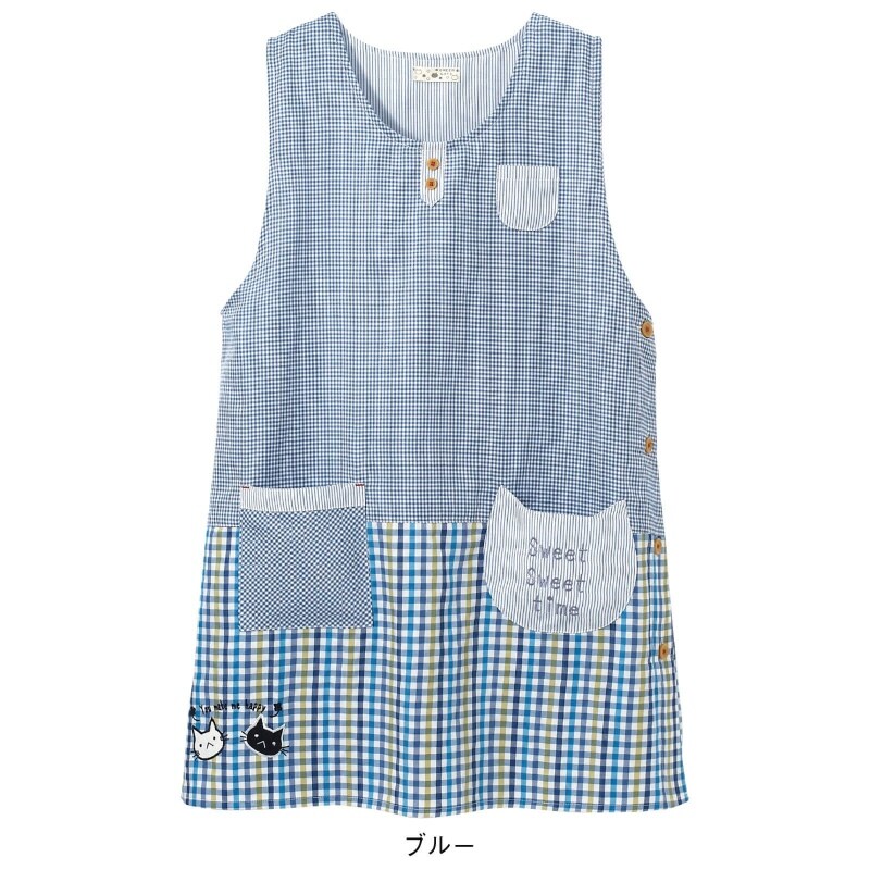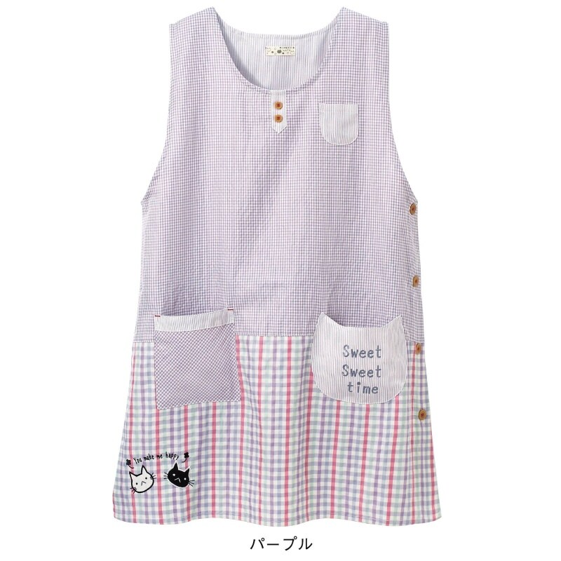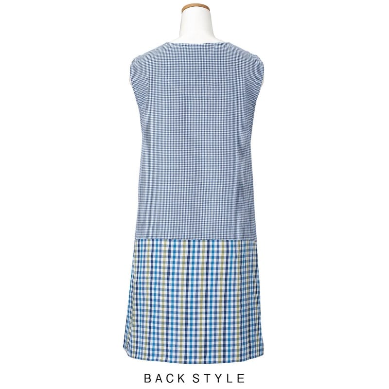大小のギンガム切替えにネコ型ポケットがアクセント