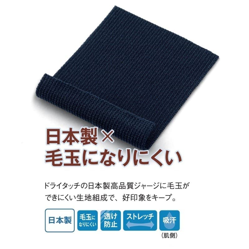 ドライタッチの日本製高品質ジャージに抗ピル加工。毛玉ができにくく好印象をキープ。