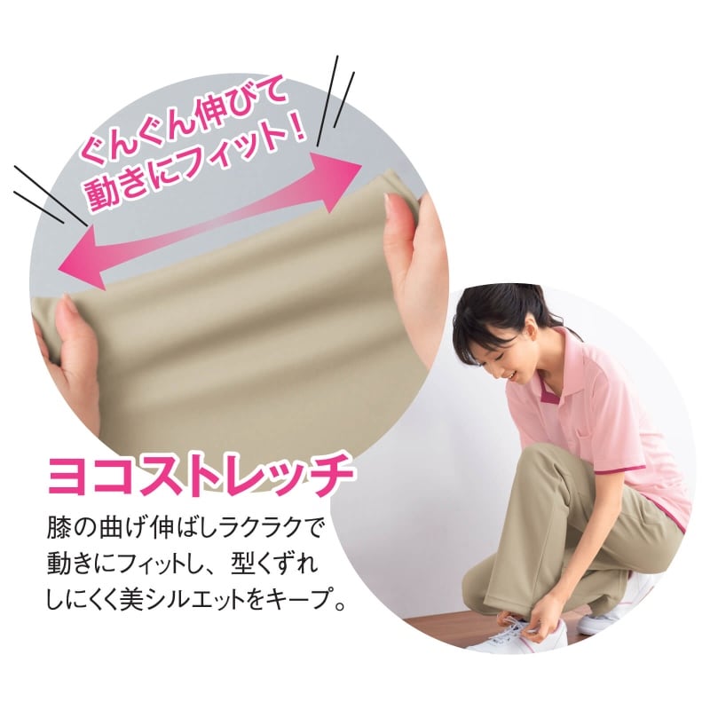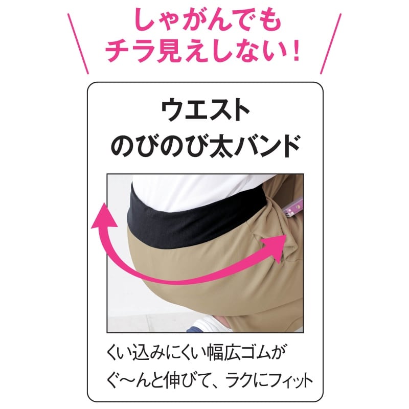 いつも綿生地のベージュのパンツを着ていましたが、伸びないので膝辺りが突っ張ってしゃがむ姿勢が大変でした。