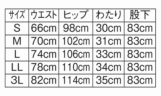 股下の長さも「83cm」と日本人女性の平均からはかなり長くなっているので、スタッフに支給する際に少し手間がかかることが難点です。