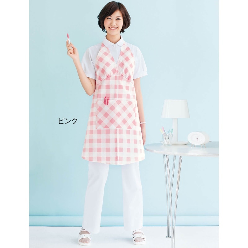 - > ホルターネックセンタースリットエプロン(ギンガム)