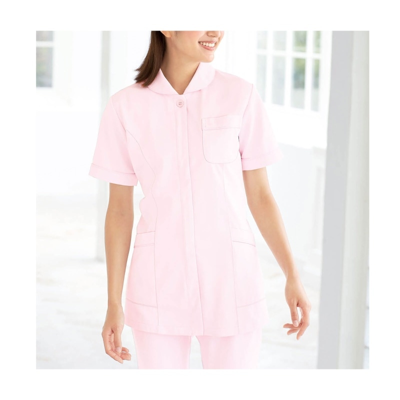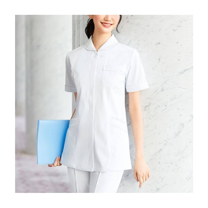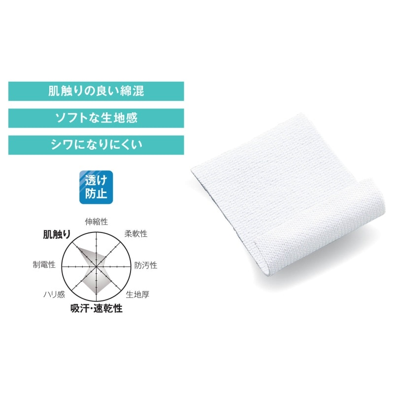 表はシワになりにくいポリエステル、裏は肌触りのいい綿。上質感ある白衣の優秀素材です。