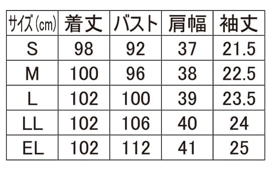 | サイズ (cm) | 着丈 | バスト | 肩幅 | 袖丈 |