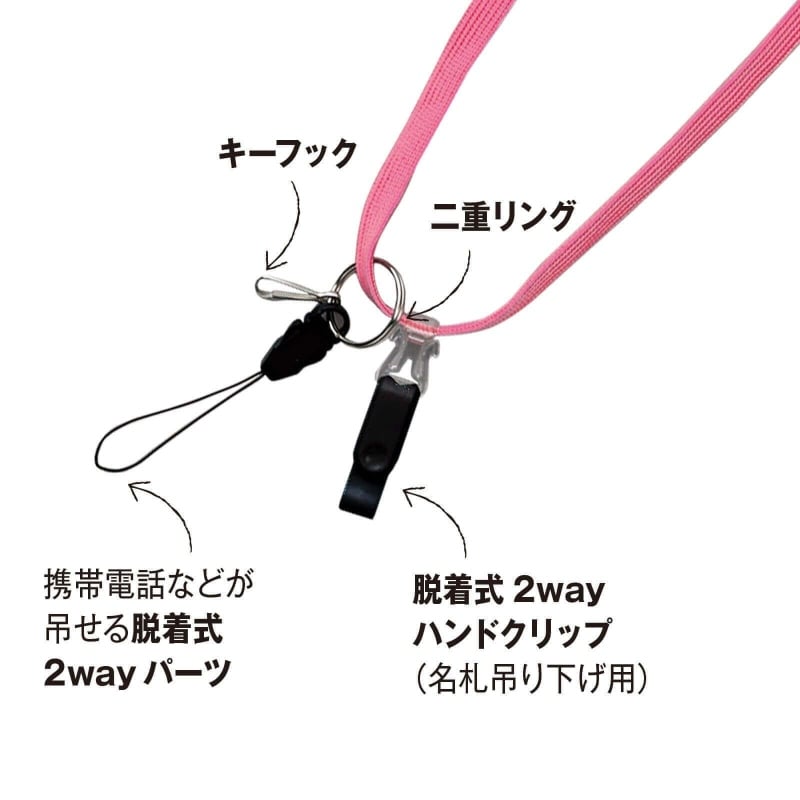 携帯電話などが吊せる脱着式2wayパーツ。