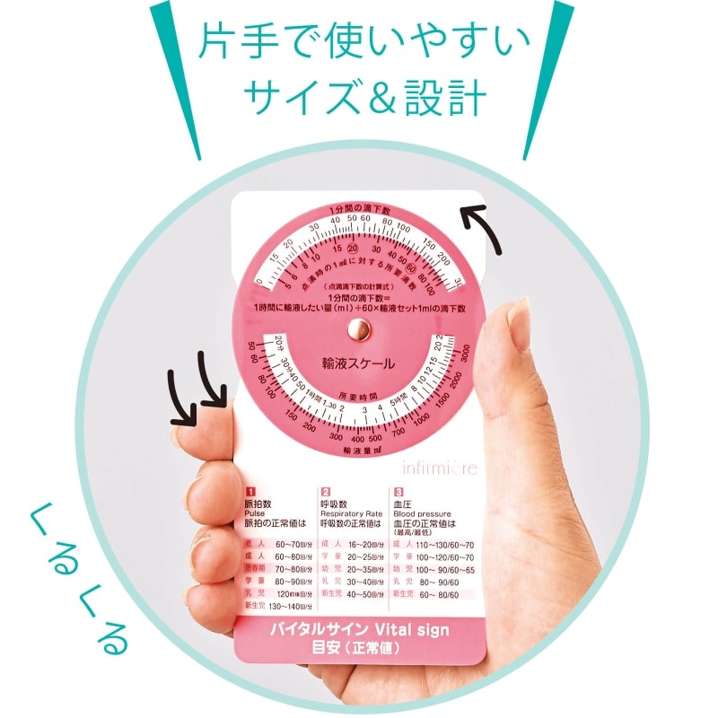10年ぶりに仕事に復帰しましたが、やっぱり、すぐには計算できないし、これがあるとすぐに滴下がわかって便利です。ポケットに入るサイズなので助かっています。投稿者:ゆかぷー性別/属性:女性年代:身長(cm):体重(kg):購入したサイズ:ホワイト×ピンク/ -