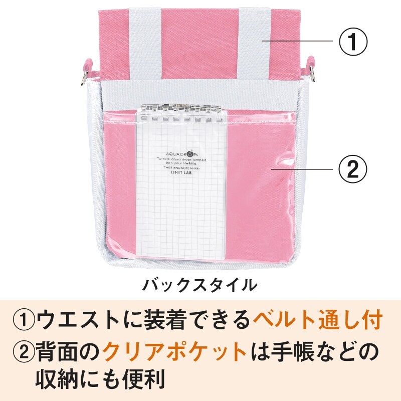・背面のクリアポケットは手帳などの収納にも便利。