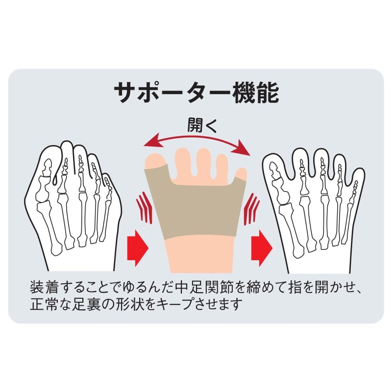 ・装着することでゆるんだ中足関節をしめて指を開かせ、正常な足裏の形状をキープさせます。