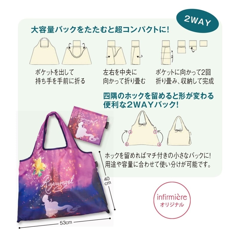 四隅のホックを留めると形が変わる便利な2WAYバック!