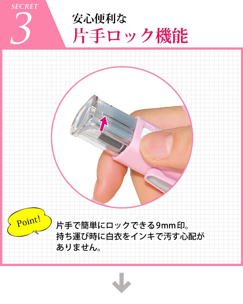 ●安心便利な片手ロック機能付きで、持ち運び時に白衣をインキで汚す心配ナシ