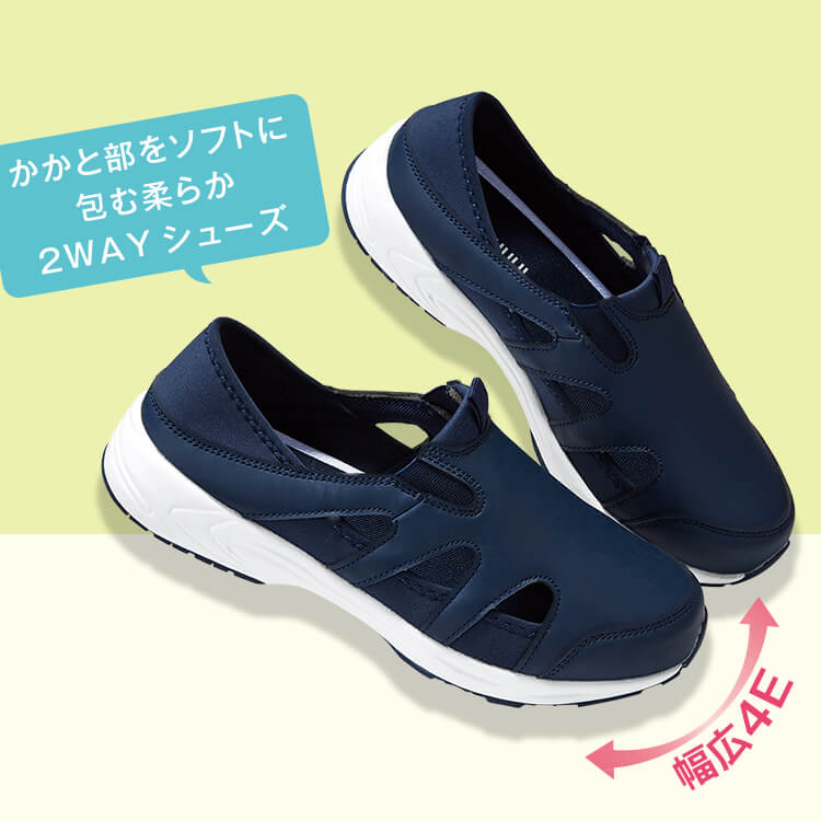 ★幅広4E 2WAYスリッポンシューズ(低反発中敷付き)