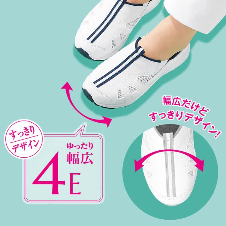 [天使のナースシューズ]4Eなのにスリム見えを実現!足裏換気のローカットシューズ