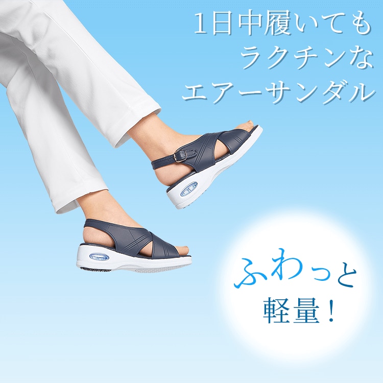 かかとの衝撃をエアーパーツでしっかり吸収しながら、美しく歩けるサンダル