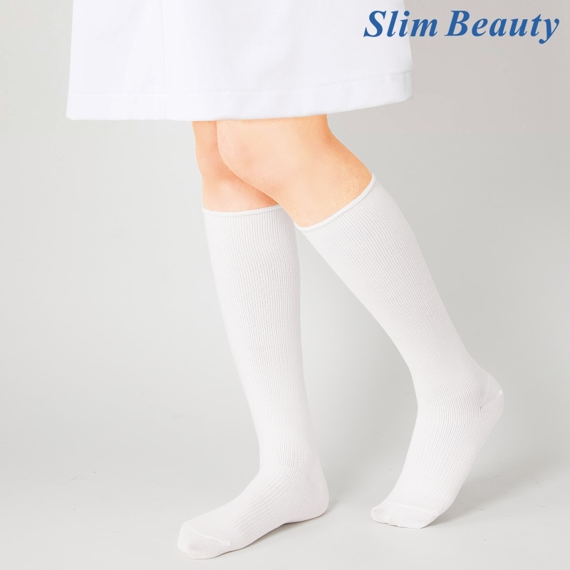 【人気】[Slim Beauty]肌思いの綿混での段階着圧に注目!信頼の日本製で働く足をサポートする強圧着圧ハイソックス