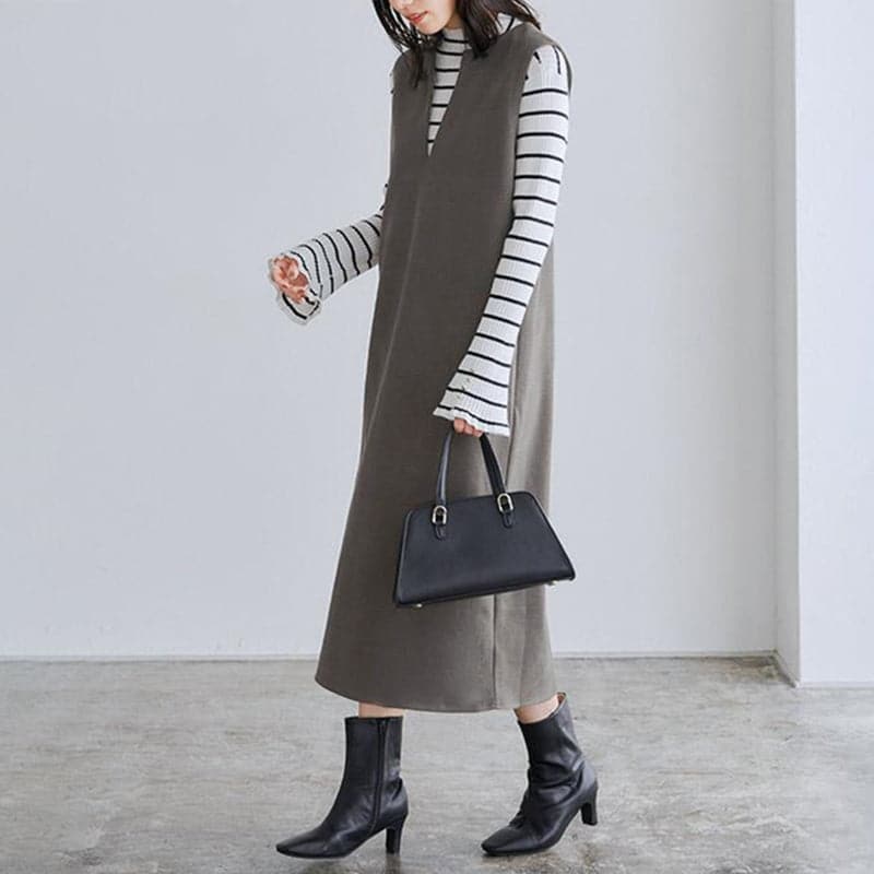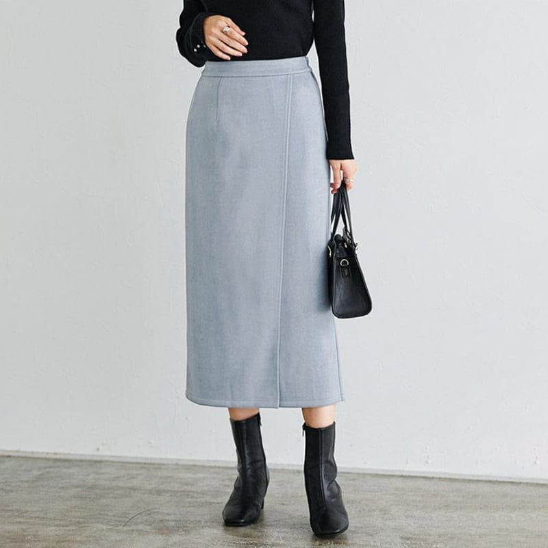 落ち着いた雰囲気に仕上げる“カットスエードタイトスカート”