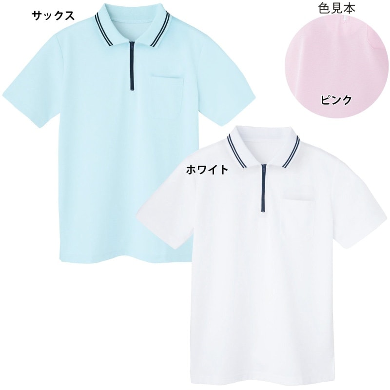 ★ナノプラチナ抗菌防臭 さらっと凹凸衿元配色ワークシャツ(男女兼用)