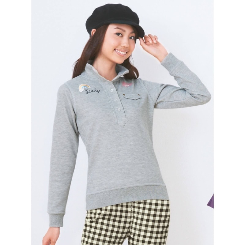 レイヤード風ポロ。涼しげな水玉の袖でUVケア!