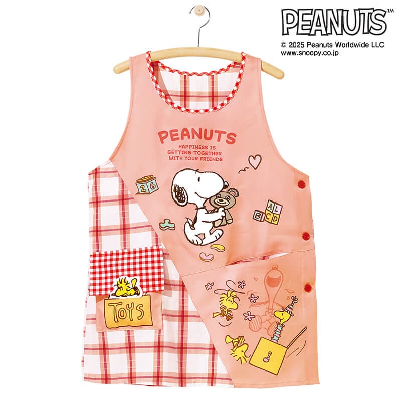 【スヌーピー】胸元には便利なループ付きエプロン!仕分け収納できる二重ポケットもポイント