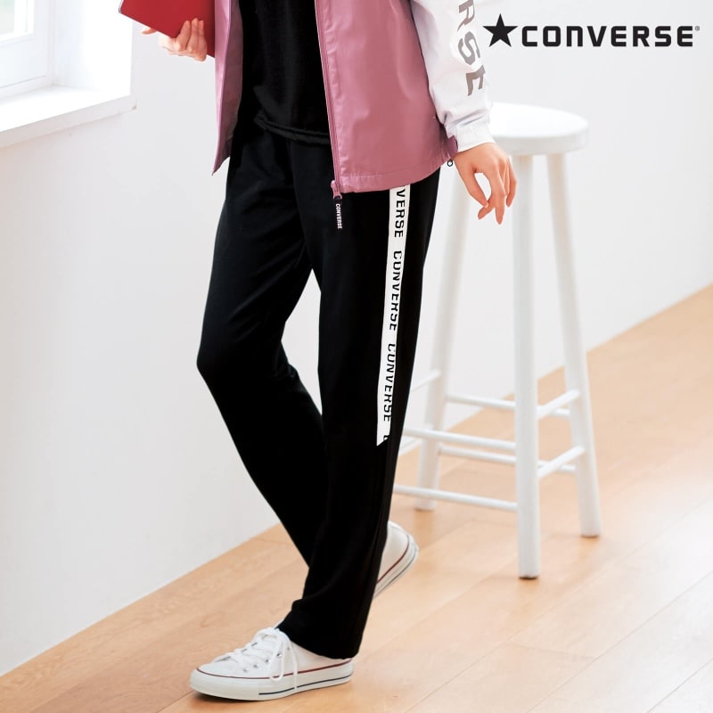 【コンバース】ロゴ&ラインが同色デザインの裾リブジョガーパンツ