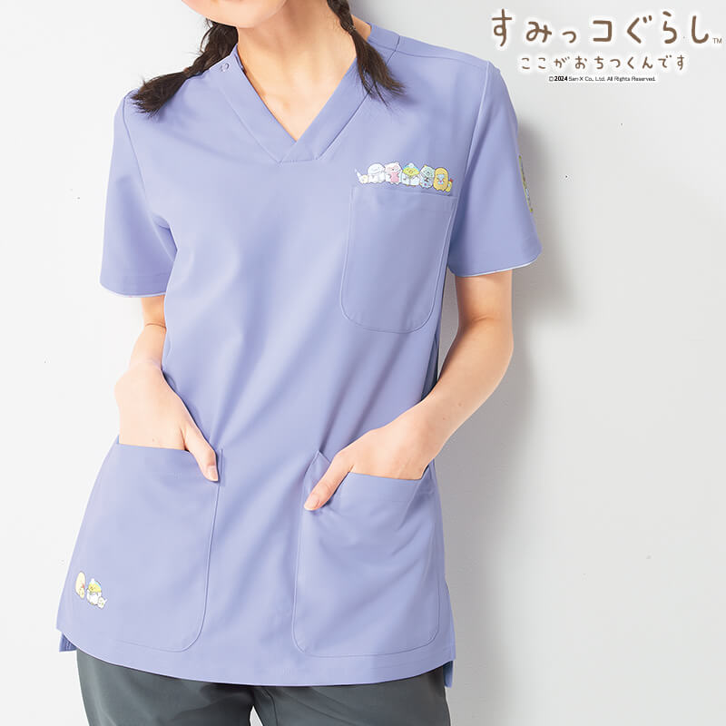 ★<サンリオキャラクターズ>ポケットネーム付き配色ストレッチスクラブ