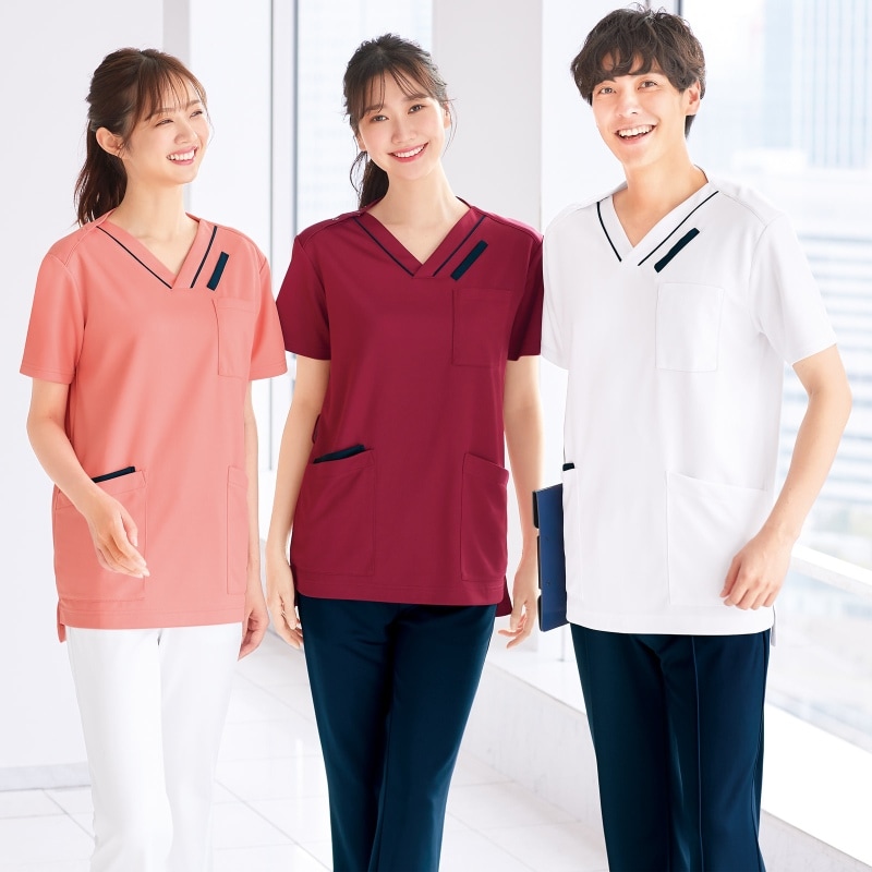 ★パウダーストレッチ 脇配色スクラブ(男女兼用)