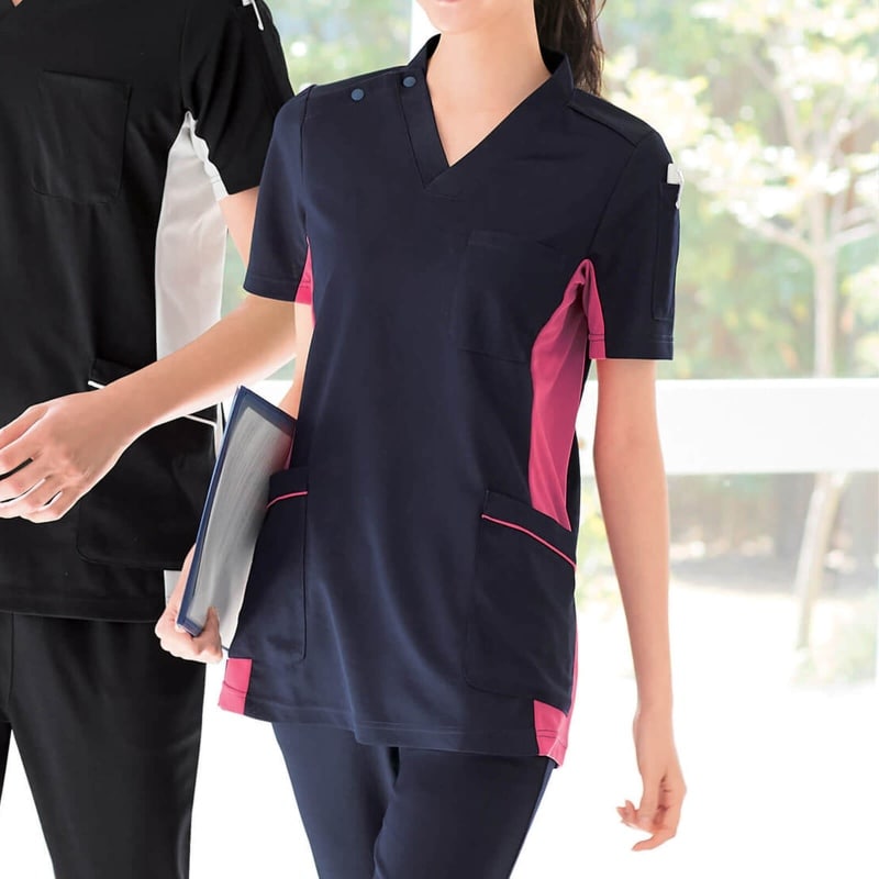 シワに強く丈夫で軽やかな脇配色スクラブ