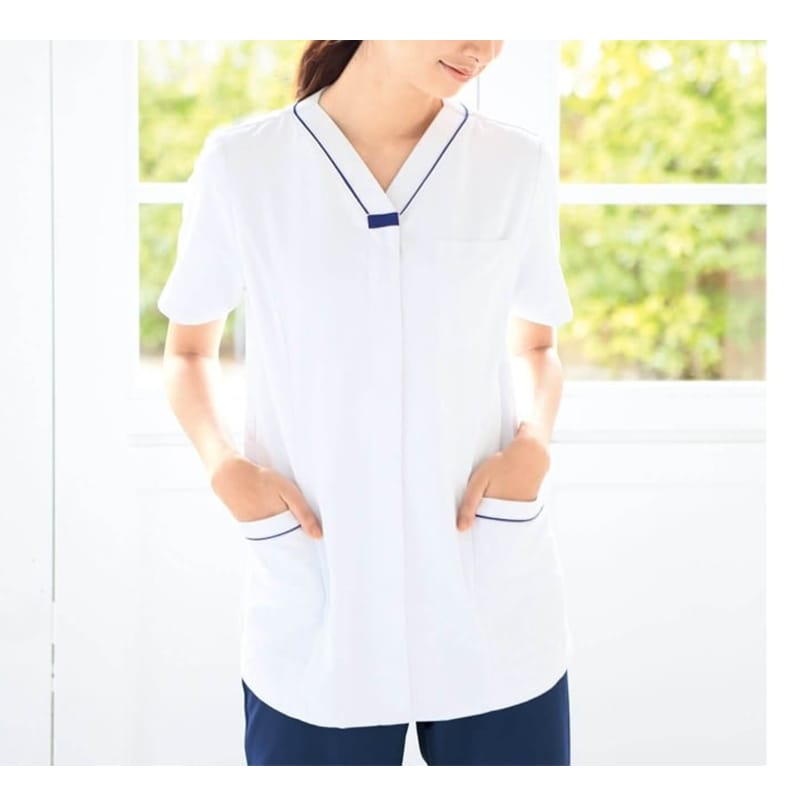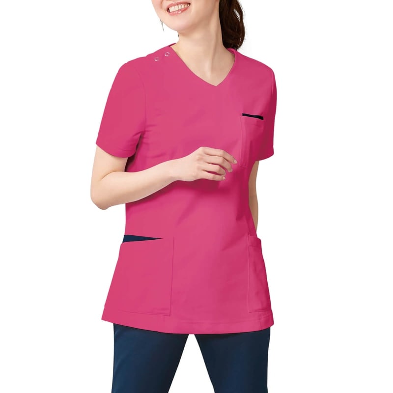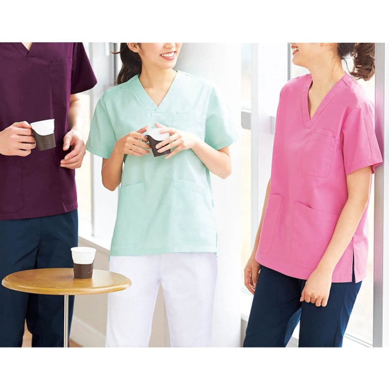 着脱しやすくて両仕分けポケットが便利なスクラブ【浅めVネック】