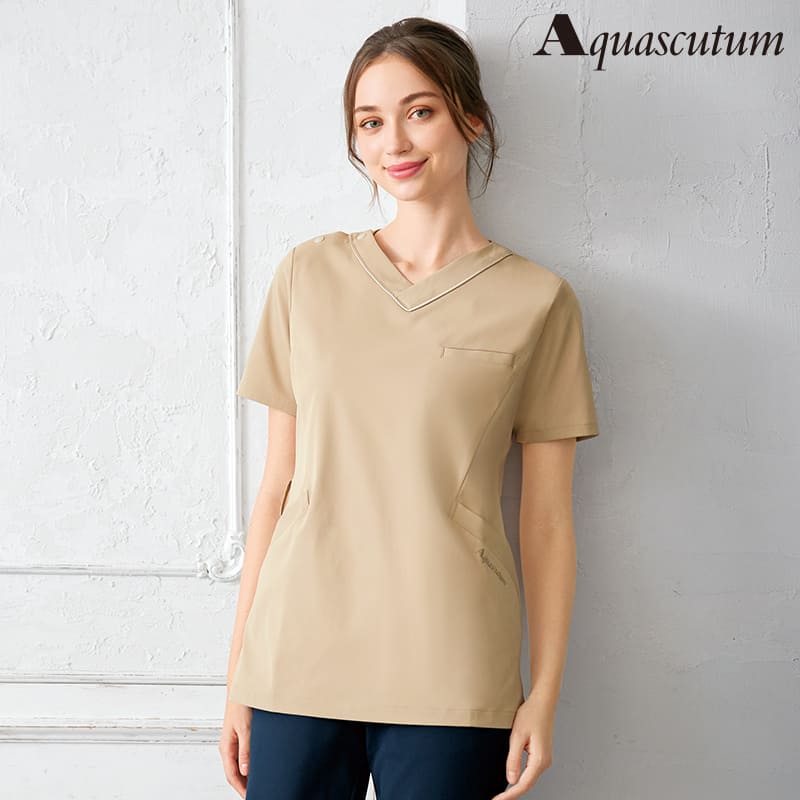★<アクアスキュータム>Vネックストレッチスクラブ(ユニセックス)