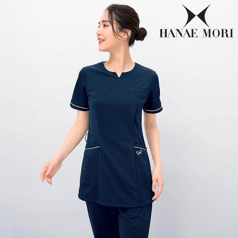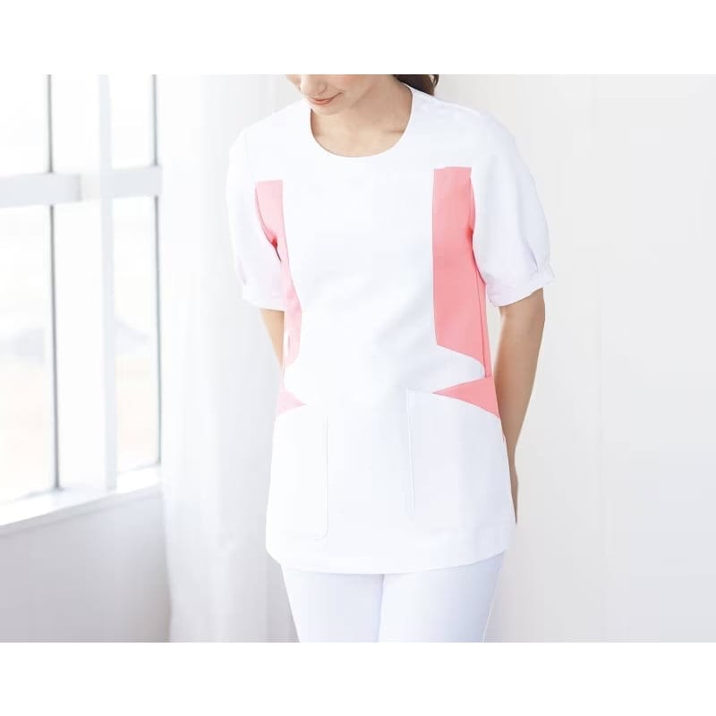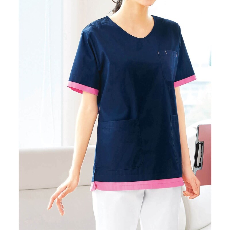 細見え脇切替えで動きやすさもUP したやさしい丸首デザインのスクラブ