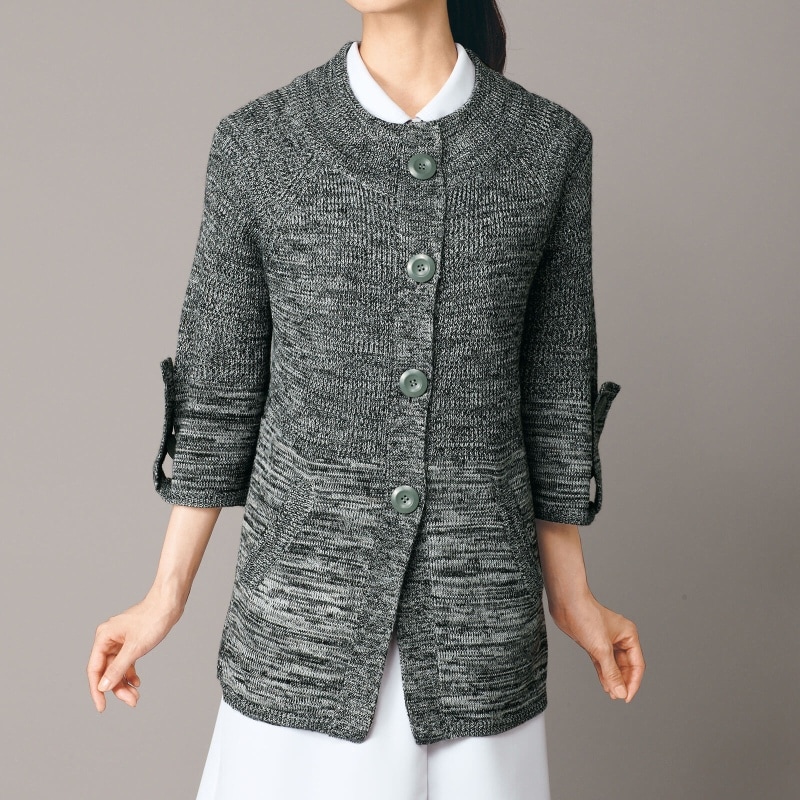 機能が自慢!汚れシミが落ちやすいカーディガン。便利な両脇ポケット付き