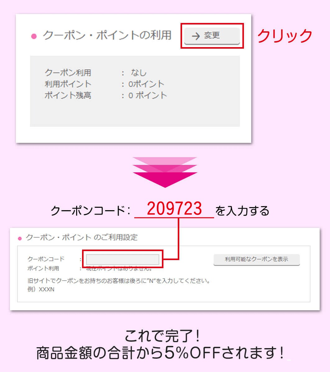 ※ クーポンコードをお控えの上、「ご注文内容確認」ページのクーポンコード入力欄にいれてください。